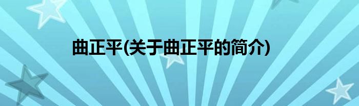 本文关于曲正平的简介就讲解完毕,希望对大家有所帮助。