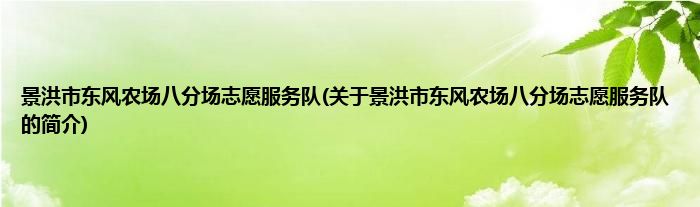 本文关于景洪市东风农场八分场志愿服务队的简介就讲解完毕,希望对大家有所帮助。