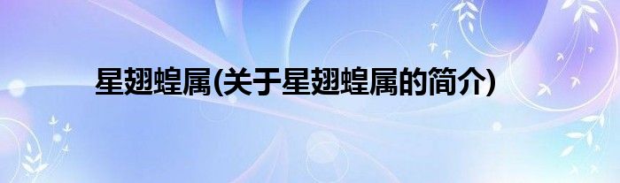 大家好,星翅蝗属,关于星翅蝗属的简介很多人还不知道,现在让我们一起来看看吧!