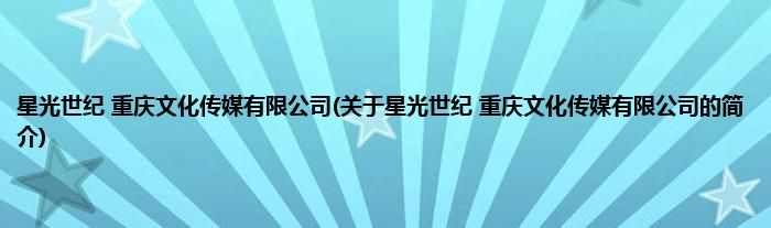 本文关于星光世纪 重庆文化传媒有限公司的简介就讲解完毕,希望对大家有所帮助。