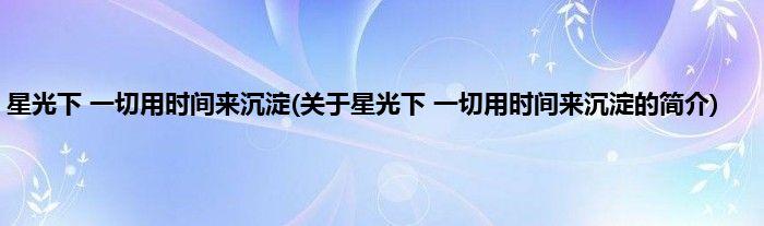 本文关于星光下,一切用时间来沉淀的简介就讲解完毕,希望对大家有所帮助。