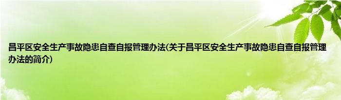 本文关于昌平区安全生产事故隐患自查自报管理办法的简介就讲解完毕,希望对大家有所帮助。