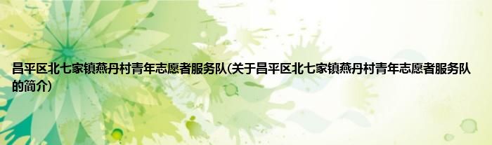 本文关于昌平区北七家镇燕丹村青年志愿者服务队的简介就讲解完毕,希望对大家有所帮助。