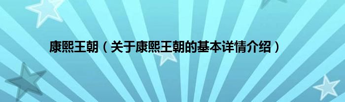 本文关于康熙王朝的基本详情介绍就讲解完毕,希望对大家有所帮助。