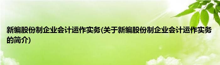 本文关于新编股份制企业会计运作实务的简介就讲解完毕,希望对大家有所帮助。