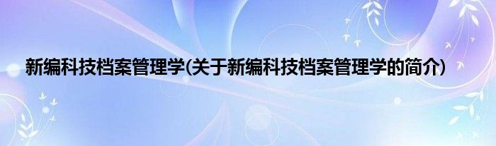 本文关于新编科技档案管理学的简介就讲解完毕,希望对大家有所帮助。