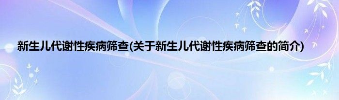 本文关于新生儿代谢性疾病筛查的简介就讲解完毕,希望对大家有所帮助。