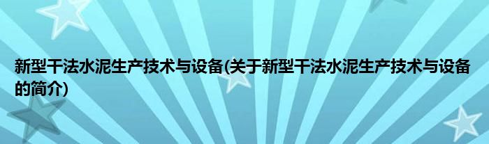 本文关于新型干法水泥生产技术与设备的简介就讲解完毕,希望对大家有所帮助。