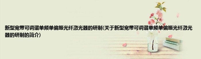 本文关于新型宽带可调谐单频单偏振光纤激光器的研制的简介就讲解完毕,希望对大家有所帮助。
