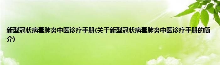 本文关于新型冠状病毒肺炎中医诊疗手册的简介就讲解完毕,希望对大家有所帮助。