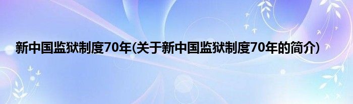 大家好,新中国监狱制度70年,关于新中国监狱制度70年的简介很多人还不知道,现在让我们一起来看看吧!