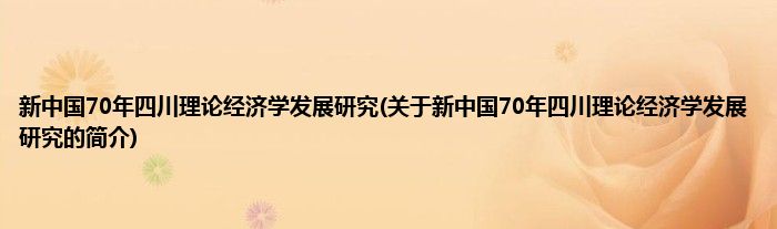 大家好,新中国70年四川理论经济学发展研究,关于新中国70年四川理论经济学发展研究的简介很多人还不知道,现在让我们一起来看看吧!