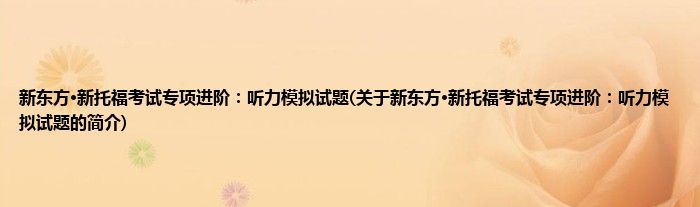 新东方·新托福考试专项进阶:听力模拟试题(关于新东方·新托福考试专项进阶:听力模拟试题的简介)