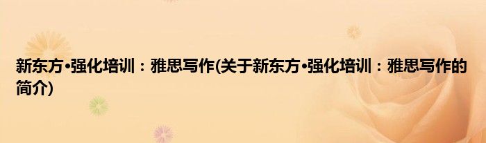 大家好,新东方·强化培训:雅思写作,关于新东方·强化培训:雅思写作的简介很多人还不知道,现在让我们一起来看看吧!