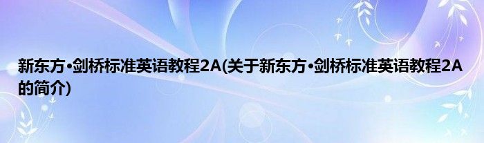 本文关于新东方·剑桥标准英语教程2A的简介就讲解完毕,希望对大家有所帮助。