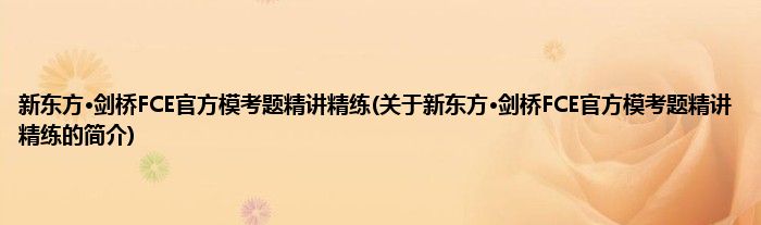 本文关于新东方·剑桥FCE官方模考题精讲精练的简介就讲解完毕,希望对大家有所帮助。