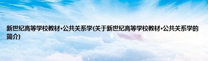 新世纪高等学校教材·公共关系学(关于新世纪高等学校教材·公共关系学的简介)