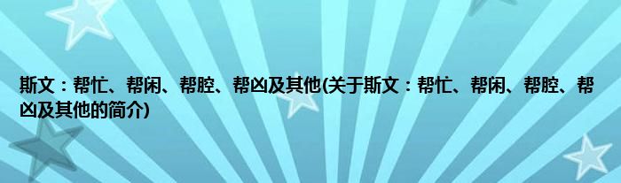 1、 《斯文:帮忙、帮闲、帮腔、帮凶及其他》是2013年3月广西师范大学出版社出版的图书。