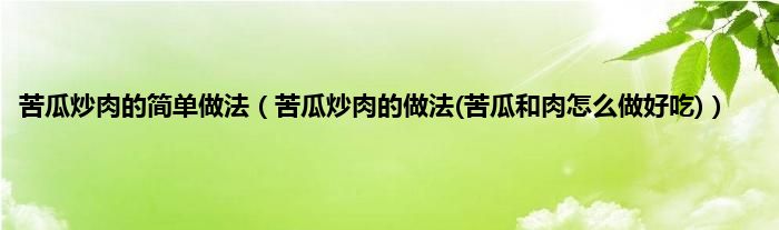 大家好,小科来为大家解答以上问题。苦瓜炒肉的简单做法,苦瓜炒肉的做法(苦瓜和肉怎么做好吃)很多人还不知道,现在让我们一起来看看吧!