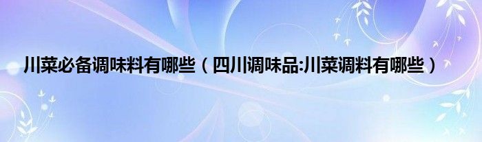 大家好,小科来为大家解答以上问题。川菜必备调味料有哪些,四川调味品:川菜调料有哪些很多人还不知道,现在让我们一起来看看吧!