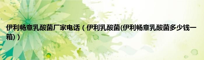 大家好,小科来为大家解答以上问题。伊利畅意乳酸菌厂家电话,伊利乳酸菌(伊利畅意乳酸菌多少钱一箱)很多人还不知道,现在让我们一起来看看吧!