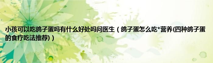 大家好,小科来为大家解答以上问题。小孩可以吃鸽子蛋吗有什么好处吗问医生,鸽子蛋怎么吃*营养(四种鸽子蛋的食疗吃法推荐)很多人还不知道,现在让我们一起来看看吧!