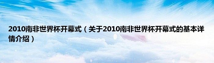 本文关于2010南非世界杯开幕式的基本详情介绍就讲解完毕,希望对大家有所帮助。