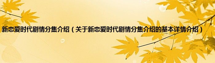 本文关于新恋爱时代剧情分集介绍的基本详情介绍就讲解完毕,希望对大家有所帮助。