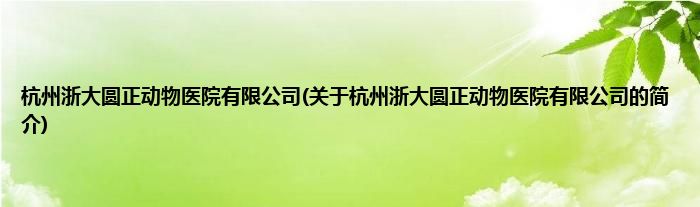 本文关于杭州浙大圆正动物医院有限公司的简介就讲解完毕,希望对大家有所帮助。