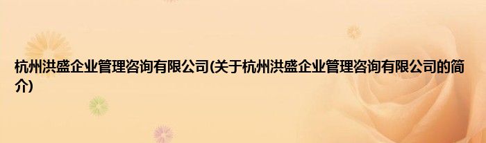 本文关于杭州洪盛企业管理咨询有限公司的简介就讲解完毕,希望对大家有所帮助。