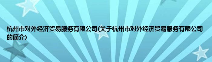 本文关于杭州市对外经济贸易服务有限公司的简介就讲解完毕,希望对大家有所帮助。