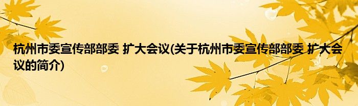 本文关于杭州市委宣传部部委 扩大会议的简介就讲解完毕,希望对大家有所帮助。