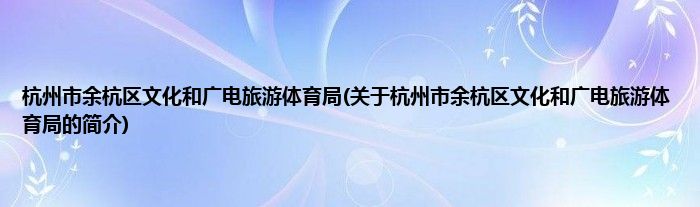 大家好,杭州市余杭区文化和广电旅游体育局,关于杭州市余杭区文化和广电旅游体育局的简介很多人还不知道,现在让我们一起来看看吧!