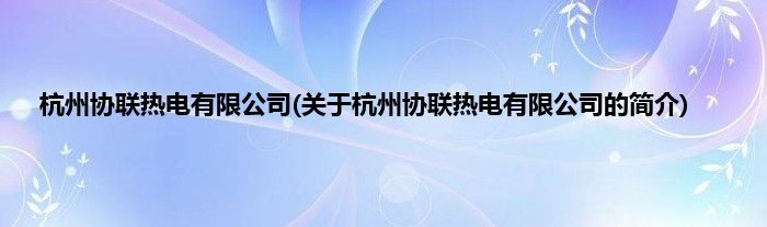 本文关于杭州协联热电有限公司的简介就讲解完毕,希望对大家有所帮助。