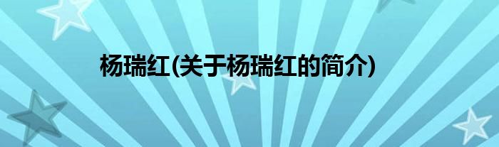 大家好,杨瑞红,关于杨瑞红的简介很多人还不知道,现在让我们一起来看看吧!