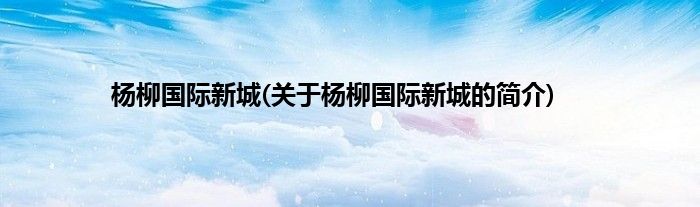 本文关于杨柳国际新城的简介就讲解完毕,希望对大家有所帮助。