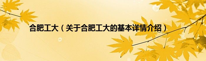 本文关于合肥工大的基本详情介绍就讲解完毕,希望对大家有所帮助。