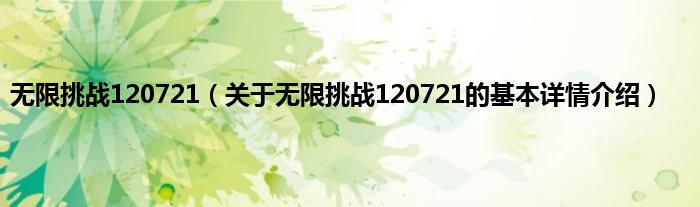 本文关于无限挑战120721的基本详情介绍就讲解完毕,希望对大家有所帮助。