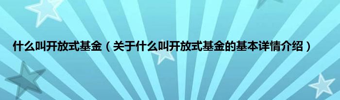 本文关于什么叫开放式基金的基本详情介绍就讲解完毕,希望对大家有所帮助。