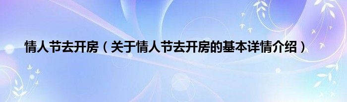 本文关于情人节去开房的基本详情介绍就讲解完毕,希望对大家有所帮助。