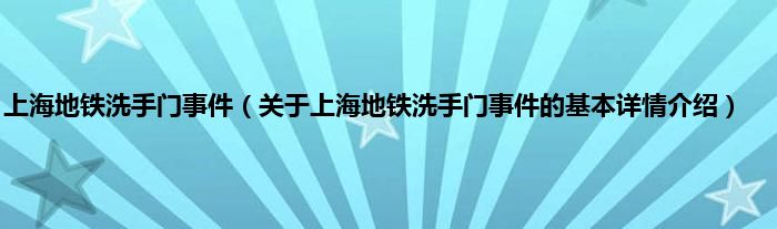 本文关于上海地铁洗手门事件的基本详情介绍就讲解完毕,希望对大家有所帮助。