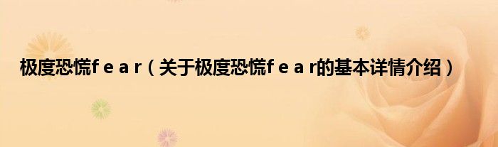 大家好我是小蝌蚪,极度恐慌f e a r,关于极度恐慌f e a r的基本详情介绍很多人还不知道,那么现在让我们一起来看看吧!