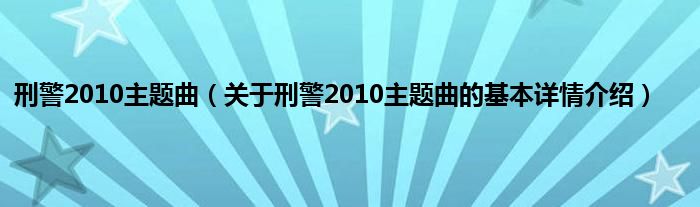 本文关于刑警2010主题曲的基本详情介绍就讲解完毕,希望对大家有所帮助。