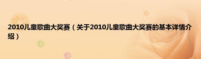 本文关于2010儿童歌曲大奖赛的基本详情介绍就讲解完毕,希望对大家有所帮助。