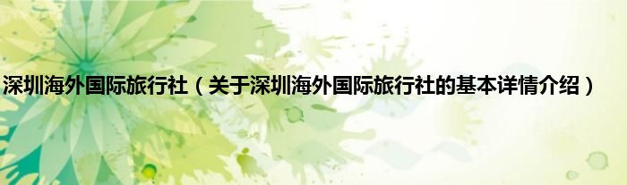 本文关于深圳海外国际旅行社的基本详情介绍就讲解完毕,希望对大家有所帮助。