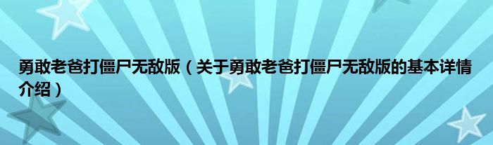 本文关于勇敢老爸打僵尸无敌版的基本详情介绍就讲解完毕,希望对大家有所帮助。