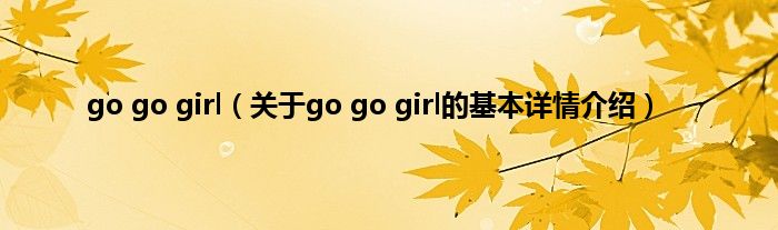 本文关于go go girl的基本详情介绍就讲解完毕,希望对大家有所帮助。