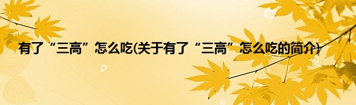 本文关于有了“三高”怎么吃的简介就讲解完毕,希望对大家有所帮助。