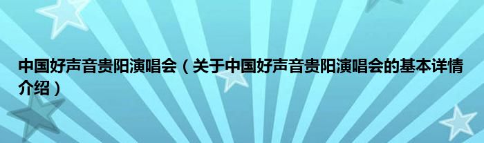 本文关于中国好声音贵阳演唱会的基本详情介绍就讲解完毕,希望对大家有所帮助。