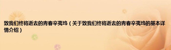 本文关于致我们终将逝去的青春辛夷坞的基本详情介绍就讲解完毕,希望对大家有所帮助。